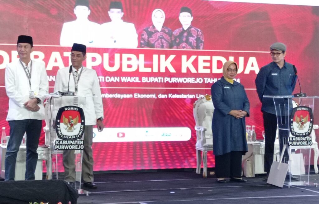 PURWOREJO, Debat Publik Kedua atau pamungkas untuk pasangan calon bupati dan wakil bupati Purworejo Yophi Prabowo -Lukman Hakim (01) dan Yuli Hastuti – Dion Agasi digelar pada Senin (18/11) di Ganeca Convention Hall. KPU Kabupaten Purworejo menjadi fasilitator kegiatan debat yang dihadiri forkopimda serta diikuti tim pendukung masing-masing paslon dan media tersebut.
