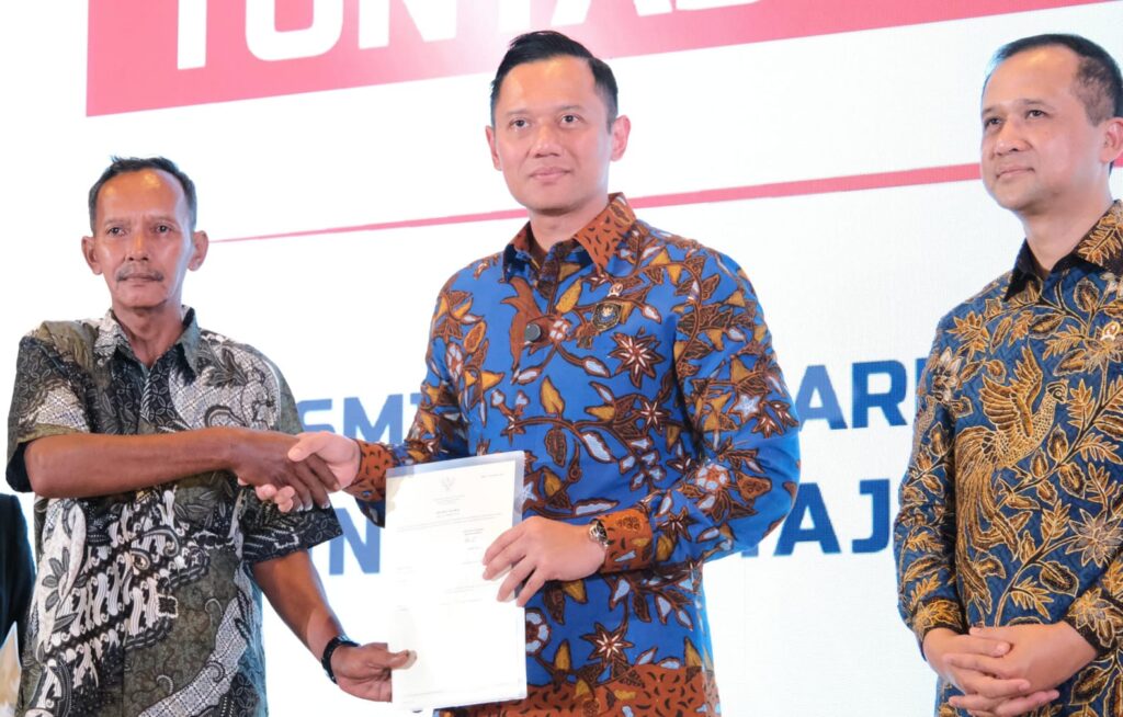JAKARTA, Setelah lebih dari dua dekade menempati tanah tanpa kepastian hukum, 642 Kepala Keluarga (KK) transmigran di Kabupaten Sukabumi akhirnya menerima Sertipikat Hak Milik (SHM) dari pemerintah melalui Kementerian Agraria dan Tata Ruang/Badan Pertanahan Nasional (ATR/BPN). Sebanyak 1.120 sertipikat diserahkan langsung ke transmigran oleh Menteri Koordinator Bidang Infrastruktur dan Pembangunan Kewilayahan (Menko IPK), Agus Harimurti Yudhoyono (AHY), dengan didampingi Wakil Menteri (Wamen) ATR/Wakil Kepala (Waka) BPN, Ossy Dermawan, dan Menteri Transmigrasi, Muhammad Iftitah Sulaiman.