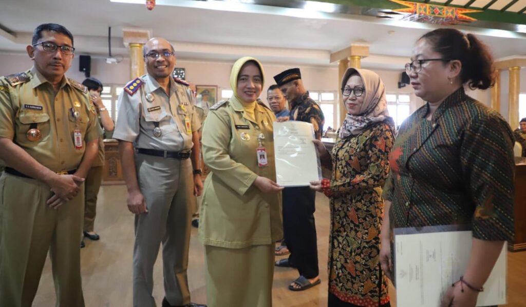 PURWOREJO, Penantian panjang selama lebih dari tiga dekade akhirnya berbuah manis. Sebanyak 40 warga penerima Program Rumah Sub Inti (PRSI) Kelurahan Keseneng, Kecamatan Purworejo, resmi menerima Sertipikat Hak Milik (SHM) atas tanah dan bangunan yang mereka tempati sejak tahun 1991. Penyerahan dilakukan secara simbolis oleh Bupati Purworejo Yuli Hastuti di Ruang Arahiwang Setda, Selasa (10/6/2025).