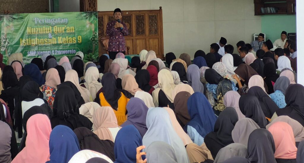 PURWOREJO, Pengajian Nuzulul Qur’an dan Istighosah mewarnai suasana Ramadan siswa SMPN 4 Purworejo. Diikuti seluruh siswa, pengajian dalam rangka Nuzulul Qur’an dan Istighosah diadakan di Masjid Universitas Muhammadiyah Purworejo (UMPwr) di hari ke-10 puasa Ramadan, (28/2/2026).