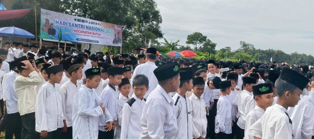 BUTUH, Ribuan santri dan pelajar dari berbagai jenjang pendidikan tumpah ruah di Lapangan Kecamatan Butuh, Rabu (22/10/2025), untuk memperingati Hari Santri Nasional (HSN) 2025.