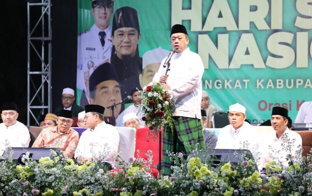 PURWAKARTA, Menteri Agraria dan Tata Ruang/Kepala Badan Pertanahan Nasional (ATR/BPN), Nusron Wahid menyatakan bahwa santri dan kiai punya peran penting dalam merebut serta mempertahankan kemerdekaan Republik Indonesia. Hal itu disampaikan dalam orasi kebangsaannya pada peringatan Hari Santri Nasional di Kabupaten Purwakarta, Sabtu (25/10/2025) malam, yang dihadiri para kiai, santri, dan tokoh masyarakat.