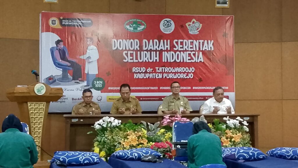 PURWOREJO, Dalam rangka memperingati hari ulang tahun ke-25 Asosiasi Rumah Sakit Daerah (Arsada), RSUD dr. Tjitrowardojo Purworejo melakukan donor darah. Kegiatan yang dilakukan serentak pada Senin (3/11/2025) ini dilakukan di Ruang Auditorium RRUD dr Tjitrowardojo.