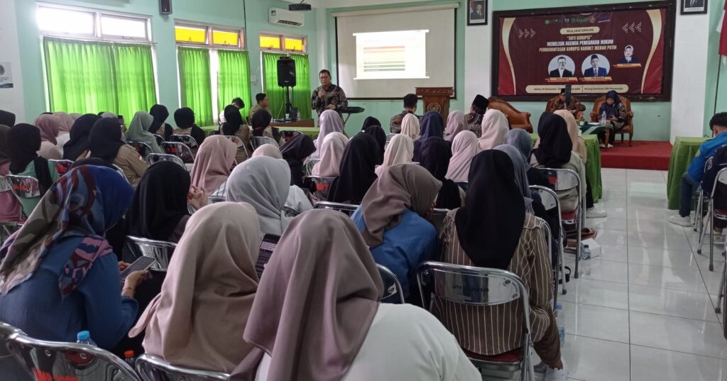Dua pemateri yakni Dosen Ilmu Hukum Fakultas Ilmu sosial UMPwr Sapardiyono dan Dosen Fakultas Hukum UMY Trisno Raharjo menjadi nara sumber dalam kuliah umum yang diadakan oleh Prodi Hukum UMPwr. Tema yang dikulik yakni menelisik agenda penegakan hukum dalam pemberantasan korupsi di Kabinet Merah Putih.