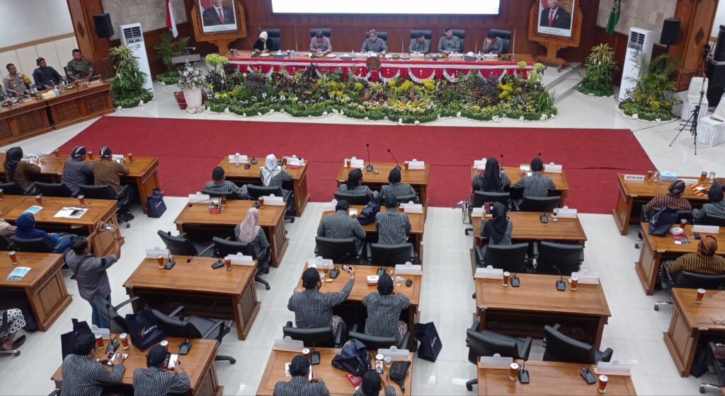 PURWOREJO, Tepat di hari jadinya yang ke ke-75, DPRD Kabupaten Purworejo menggelar Rapat Paripurna pada Jumat (27/10). Rapat yang digelar di Ruang Sidang Paripurna itu merupakan yang terakhir kalinya bagi anggota dewan periode tahun 2019-2024. Bupati Agus Bastian, Wakil Bupati Yuli Hastuti, Sekda Said Romadhon, forkopimda, OPD, dan camat Purworejo turut hadir dalam acara tersebut.