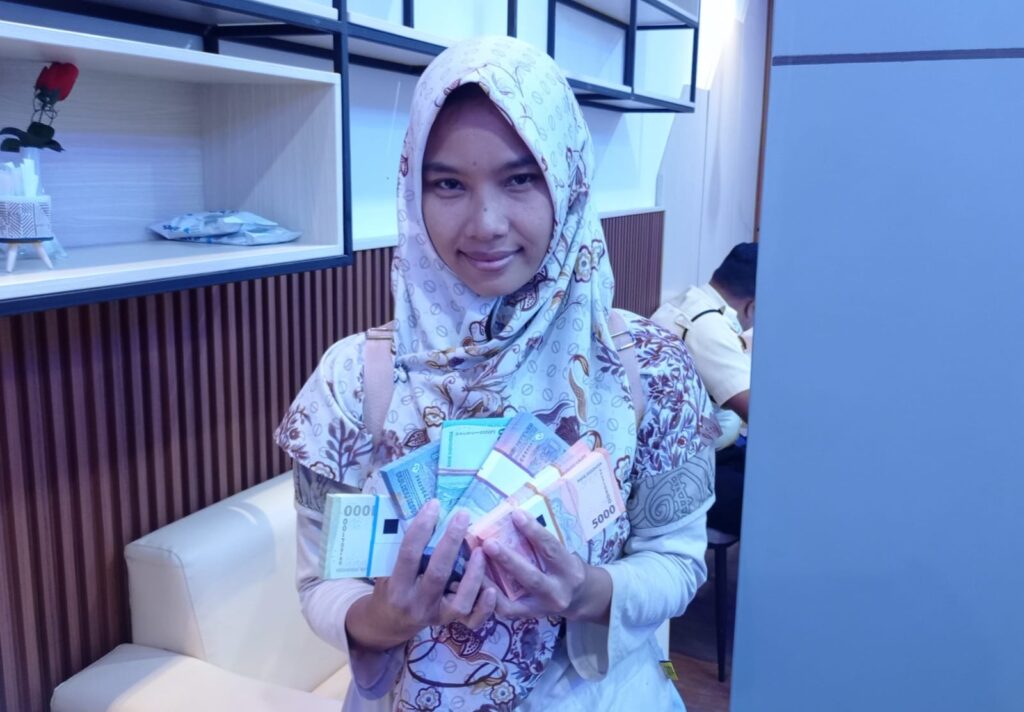 Seperti salah satu penukar uang baru, Isnaeni (33). Warga Kecamatan Ngombol itu menukarkan Rp2 juta dengan pecahan Rp10 ribu dan Rp5 ribu masing-masing 100 dan 200 lembar uang baru. Dijelaskan, dirinya melakukan pendaftaran pada Minggu (16/3/2025) mulai pukul 09.00.