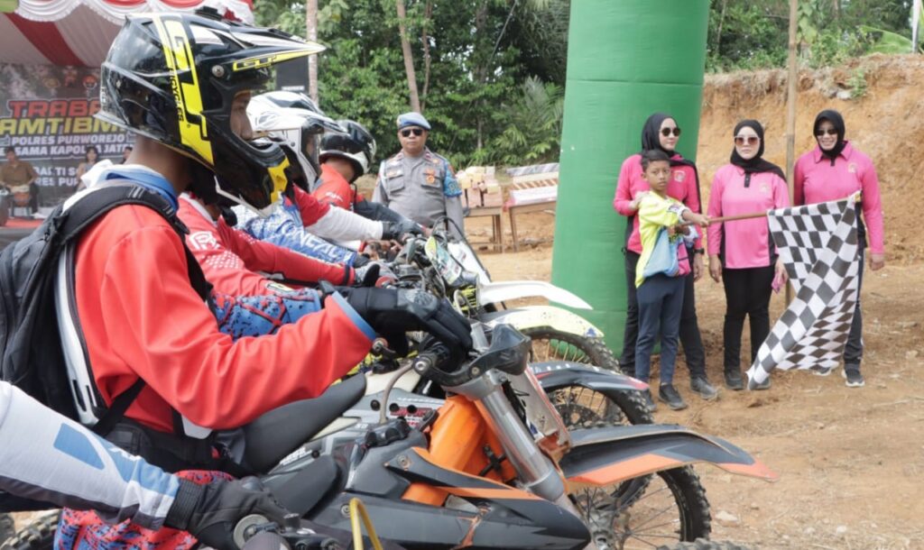 PURWOREJO, Masih dalam rangkaian perayaan Hari Bhayangkara ke-78, Polres Purworejo menggelar acara sosialisasi keamanan ketertiban masyarakat (kamtibmas) yang dibalut dengan olahraga motor trail atau Trabas Kamtibmas. Puncak kegiatan Trabas Kamtibmas pada Minggu (23/6) pagi diadakan di Desa Wisata Dilem Kecamatan Kemiri.