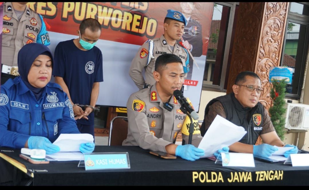 Kapolres Purworejo saat menyampaikan rilis didampingi Humas dan Kasat Reskrim
