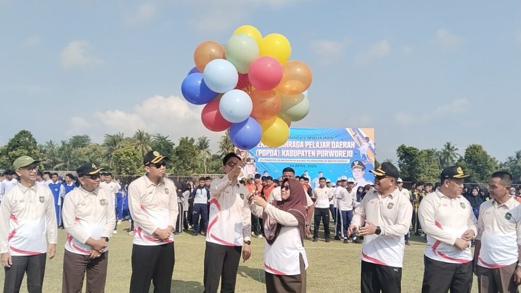 PURWOREJO, Perhelatan Pembukaan Pekan Olahraga Pelajar Daerah (Popda) Kabupaten Purworejo Tahun 2026 segera dimulai. Acara apel pembukaan Popda berlangsung meriah di Stadion Sarwo Edhi Wibowo, Selasa (14/4/2026) pagi. Ratusan pelajar SD hingga SMA sederajat menjadi peserta apel yang dipimpin oleh Bupati Yuli Hastuti. Jajaran Sekda, forkopimda, ketua OPD hingga pimpinan organisasi pun turut hadir.