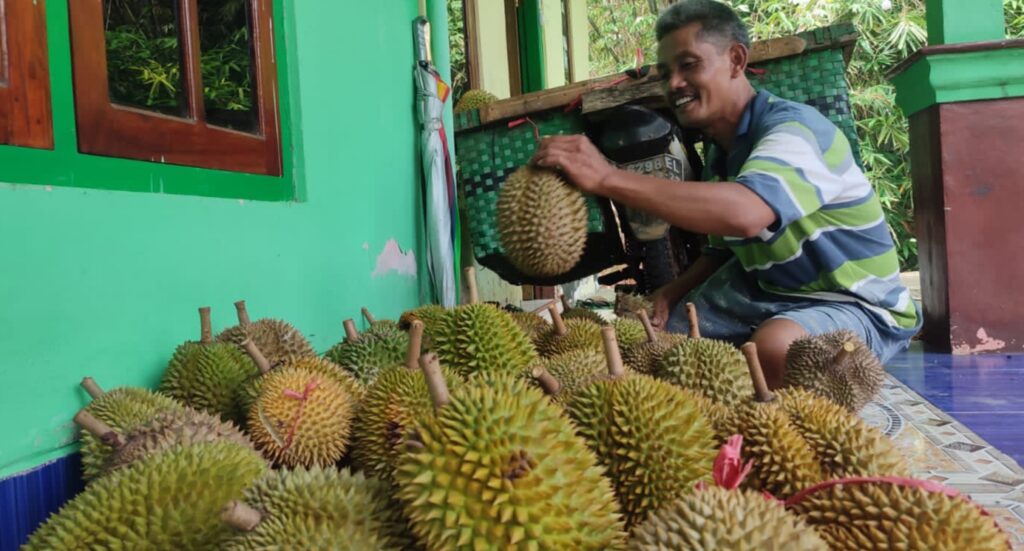Dijelaskannya, meski tidak seperti tahun lalu yang hasilnya bisa mencapai 400 buah dalam sekali panen, kali ini hanya sekitar 150-an saja. “Karena musim kemaraunya kepanjangan, jadi hasilnya kurang bagus. Biasanya kalau ditebas dapat Rp 10 juta, kali ini hanya dapat Rp 2 juta,” ungkap Nasrodi. Hal itu juga disebabkan kualitas durian yang kurang maksimal.