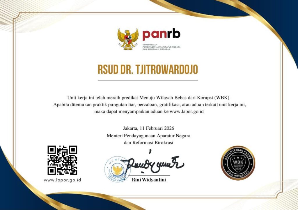 RSUD dr.Tjitrowardojo berkomitmen untuk terus menjaga integritas serta memberikan pelayanan kesehatan yang berkualitas, transparan, dan akuntabel bagi seluruh masyarakat. (Ita)
