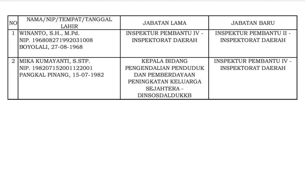 Berikut nama-nama pejabat yang dilantik hari ini:
