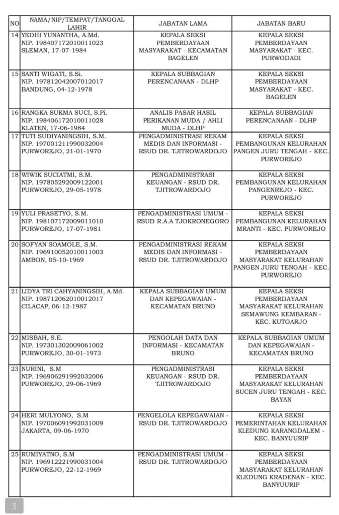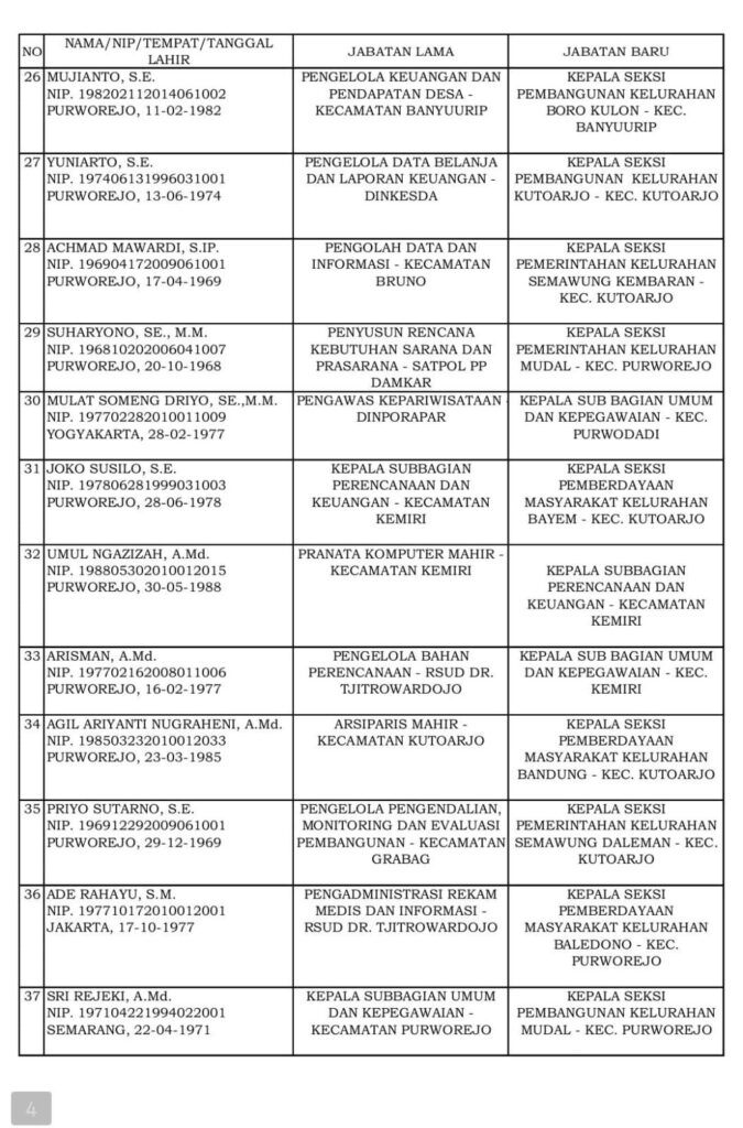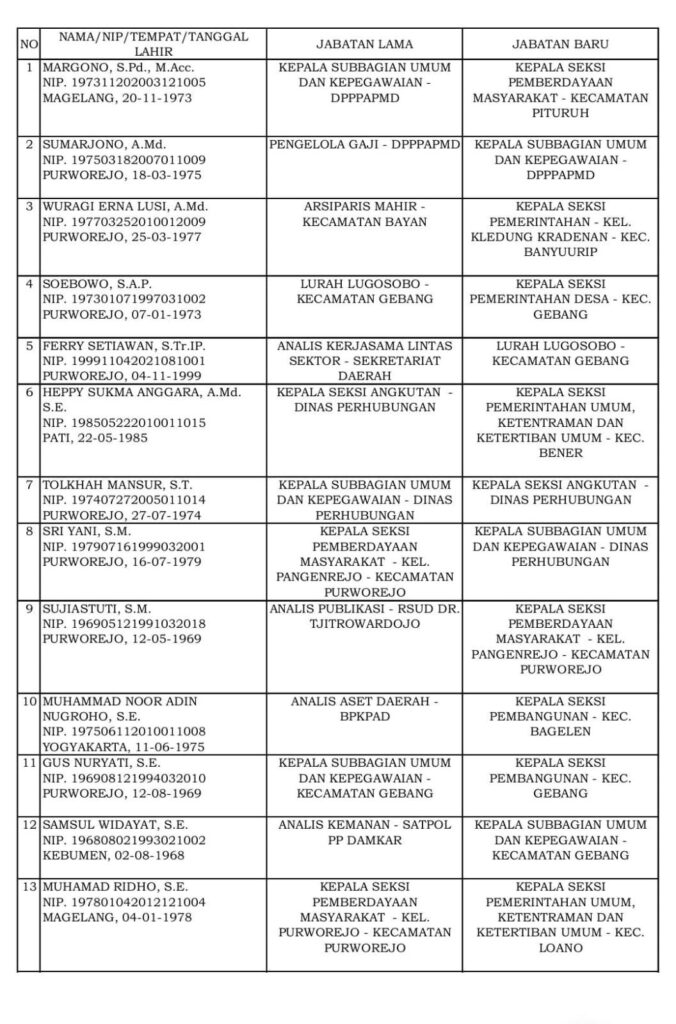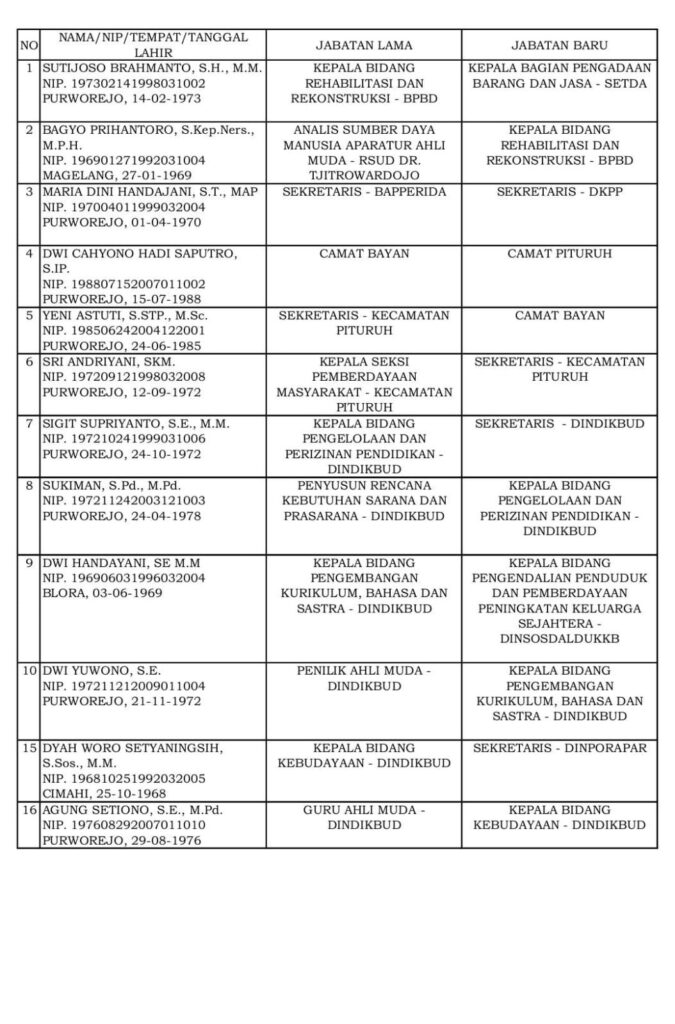 “Dengan terisinya jabatan Sekretaris Daerah ini, saya tentu sangat berharap dapat semakin menguatkan kinerja Pemerintah Kabupaten Purworejo menuju tata kelola pemerintahan yang lebih baik, efektif, akuntabel dan profesional,” ucapnya.