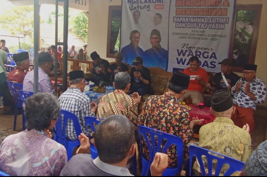 BENER, Warga Desa Wadas Kecamatan Bener memberikan dukungan kepada Ahmad Luthfi sebagai Gubernur Jateng periode 2024-2029. Dukungan tersebut dideklarasikan di halaman rumah salah satu warga setempat pada Kamis (10/10). Sejumlah harapan pun mereka sampaikan agar Ahmad Luthfi nantinya bisa memajukan Desa Wadas. Mereka yang hadir merupakan perwakilan warga dari berbagai dusun. Semula Ahmad Luthfi berencana datang ke lokasi tersebut.