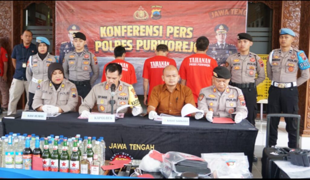 “Ada 59 orang penjual yang diamankan, dengan rincian tujuh orang diproses hukum dan 52 orang dibina. Dalam operasi miras kali ini Polres Purworejo menyita sejumlah barang bukti yaitu 91 botol miras pabrikan dan 124 botol miras oplosan,” bebernya.