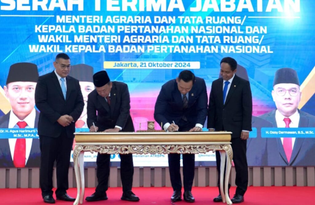 Selanjutnya AHY yang menjabat sebagai MenterI ATR/BPN mulai Februari hingga Oktober 2024 diangkat menjadi Menteri Koordinator Bidang Infrastruktur dan Pembangunan Kewilayahan. Sertijab juga dilakukan antara Wakil Menteri ATR/Wakil Kepala BPN terlantik, Ossy Dermawan dengan Wakil Menteri ATR/Wakil Kepala BPN periode 2022-2024, Raja Juli Antoni yang kini menjabat sebagai Menteri Kehutanan.