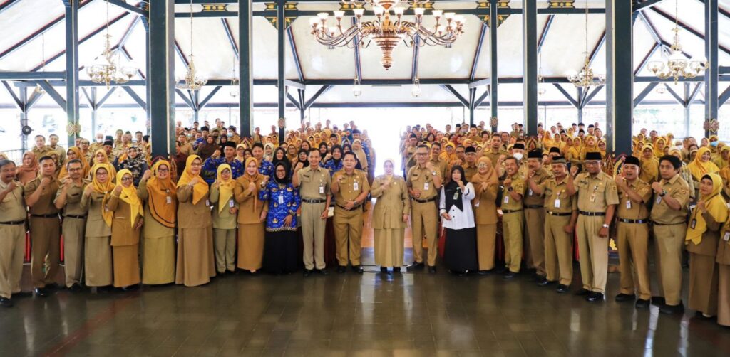 PURWOREJO, Bupati Purworejo Yuli Hastuti membuka pelaksanaan Sosialisasi dan Deklarasi Satuan Pendidikan Ramah Anak (SRA), di Pendopo Kabupaten, Senin (18/3). Sosialisasi diikuti 668 kepala SD, SMP, SMAK/SMK se-Kabupaten Purworejo selama dua hari yakni Senin dan Selasa (18-19/3). Hari pertama sosialisasi diikuti 331 kepala sekolah, sisanya di hari berikutnya.