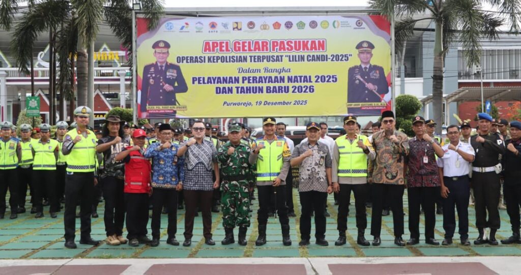 PURWOREJO, Untuk memastikan perayaan Natal 2025 dan Tahun Baru 2026 berjalan aman, damai dan kondusif, Kepolisian Resor (Polres) Purworejo menggelar Apel Gelar Pasukan Operasi Lilin Candi 2025. Kegiatan ini dilaksanakan di halaman Mapolres Purworejo pada Jumat (19/12/2025) sore. Apel dilakukan sebagai bentuk pengecekan akhir kesiapan personel maupun sarana prasarana.