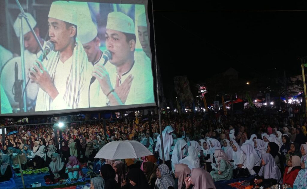 KEMIRI, Sebagai rasa syukur atau kelulusan siswa kelas 12 dan 9, SMK Nurussalaf dan SMP Nurul Muttaqin Kemiri menggelar Sholawatan Akbar bersama komunitas Gandrung Nabi dari Kabupaten Grobogan, Purwodadi. Acara yang digelar di lapangan Kecamatan Kemiri pada Senin (19/5/2025) malam itu sukses digelar. Selain dihadiri seluruh siswa dari kedua sekolah, khususnya kelas 12 dan 9, acara sholawatan juga dihadiri ribuan warga yang memenuhi lapangan Kecamatan Kemiri.