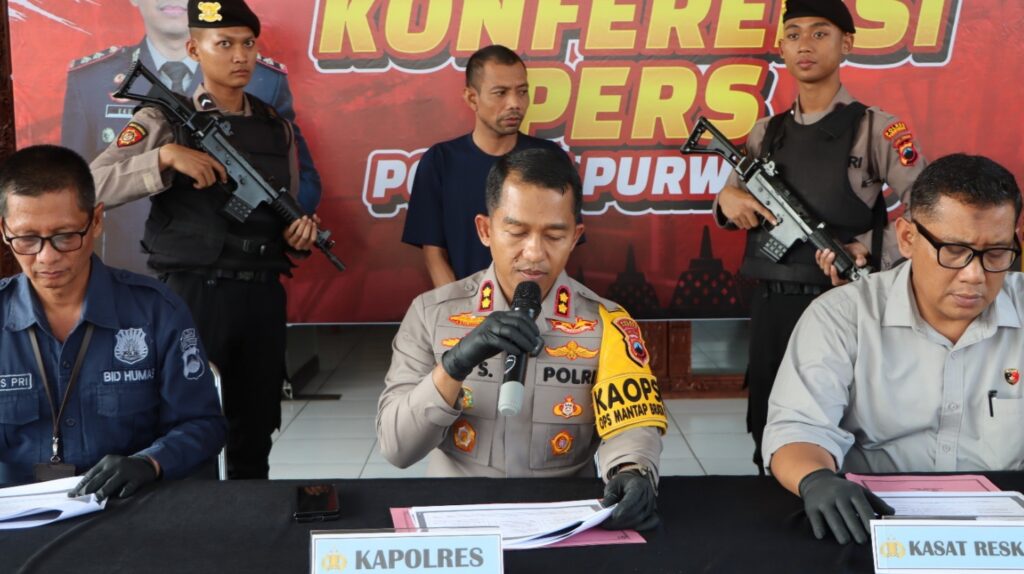 Kapolres Purworejo AKBP Eko Sunaryo saat konferensi pers pada Sabtu (11/05) sore menjelaskan menjelaskan secara rinci kejadian tersebut. “Pelaku merupakan seorang buruh harian yang melakukan pencurian di dalam rumah kosong milik almarhum H. Iskandar di Gang Selarik RT 01 RW10 Kelurahan Kutoarjo,” jelas Kapolres.