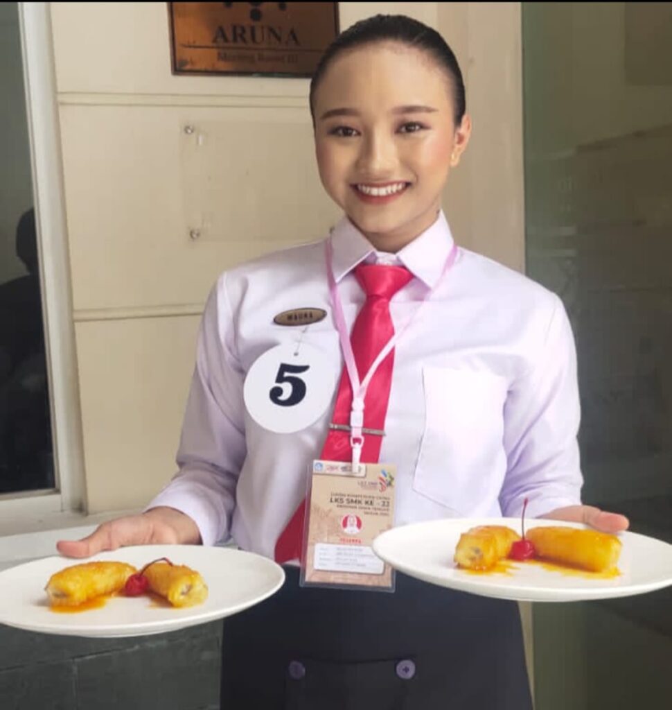 PURWOREJO, Siswi kelas 11 Jurusan Kuliner SMKN 3 Purworejo, Maura Eka Putri, meraih Juara 2 pada LKS Tingkat Provinsi Jawa Tengah. Dalam lomba yang digelar di Surakarta selama tiga hari, Senin hingg Rabu (28-30/4/2025) ini, Maura ikut mata lomba Restaurant Service. Berupa ketrampilan menyajikan menu restoran, termasuk pelayanan makanan dan minuman, serta teknik komunikasi.