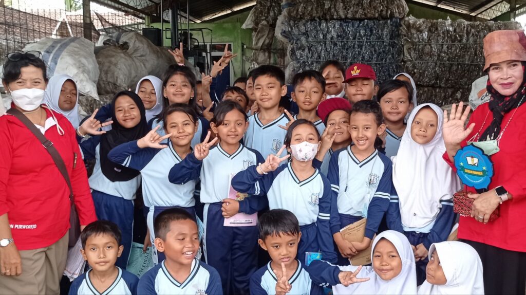 LOANO, Sebanyak 59 siswa kelas 4 SDN Purworejo melakukan kunjungan Proyek Penguatan Profil Pelajar Pancasila (P5) dengan tema gaya hidup berkelanjutan. Kunjungan dilakukan ke Tempat Pengolahan Sampah Reduce-Reuse-Recycle (TPS 3R) di Desa Trirejo Kecamatan Loano pada Senin (30/10).