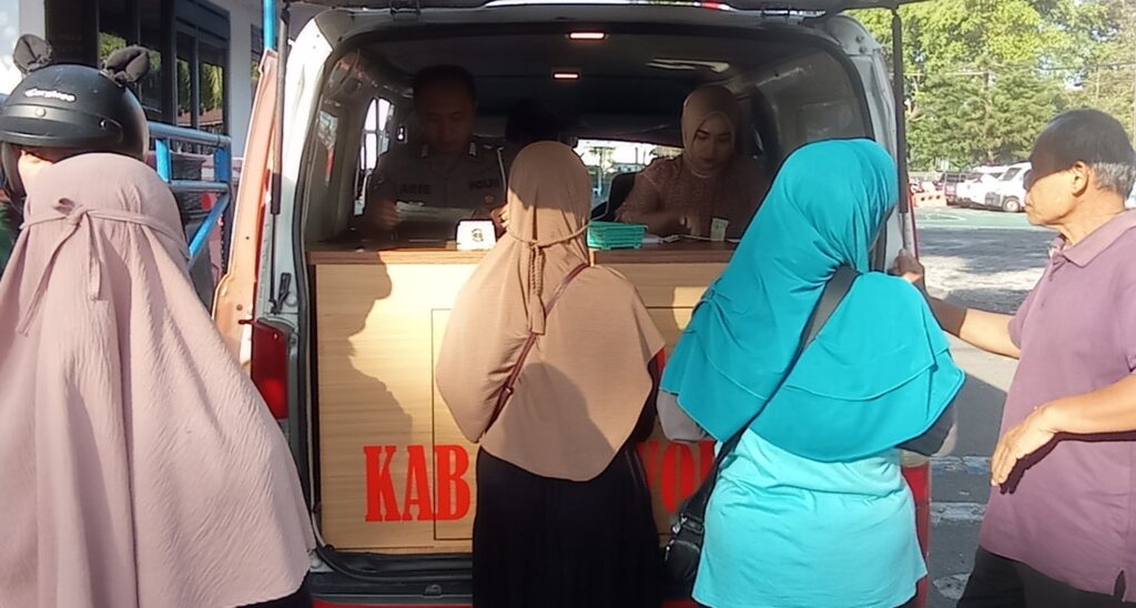 Selama dua jam yakni mulai pukul 06.00 hingga 08.00, masyarakat silih berganti mendatangi tempat pembayaran PKB berupa mobil khusus milik UP2D. Terdapat tiga petugas yang melayani, termasuk dari Unit Regident Satlantas Polres Purworejo.