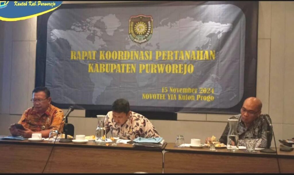 Rapat Koordinasi dan Evaluasi Kegiatan Pertanahan Tahun 2024 serta Perencanaan Kegiatan Tahun 2025 pun dilakukan dengan mengundang OPD terkait, termasuk Badan Pertanahan Nasional (BPN) Kabupaten Purworejo yamg dihadiri oleh Kepala BPN Andri Kristanto didampingi Kepala Seksi Survei dan Pemetaan dan Kepala Seksi Penetapan Hak dan Pendaftaran.