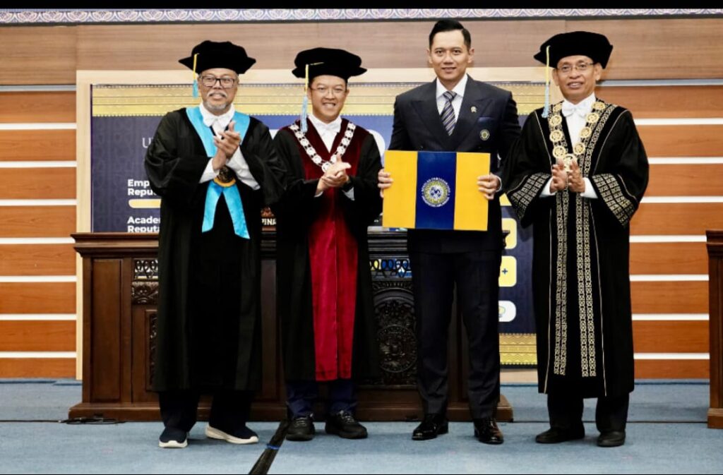 “Perlu kerja keras bersama yang luar biasa, kuncinya berada di pundak para pemimpin yang transformasional, para orkestrator sumber daya manusia bangsa karena mereka yang akan mampu membangun sinergi dan kolaborasi sekaligus merobohkan tembok-tembok ego sektoral,” terang Menteri AHY dalam orasi ilmiahnya.