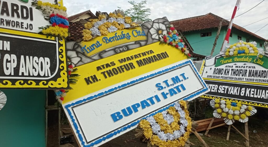 PURWOREJO, Wafatnya ulama karismatik asal Purworejo, KH Thoifur Mawardi pada Selasa (19/8/2025) sore tidak hanya membuat puluhan ribu pelayat datang baik dari dalam maupun luar wilayah untuk menyampaikan rasa bela sungkawa. Ratusan karangan bunga (karbung) pun dikirim ke Ponpes Daarut Tauhid di Desa Kedungsari, Purworejo tempat asal kiai kondang tersebut.