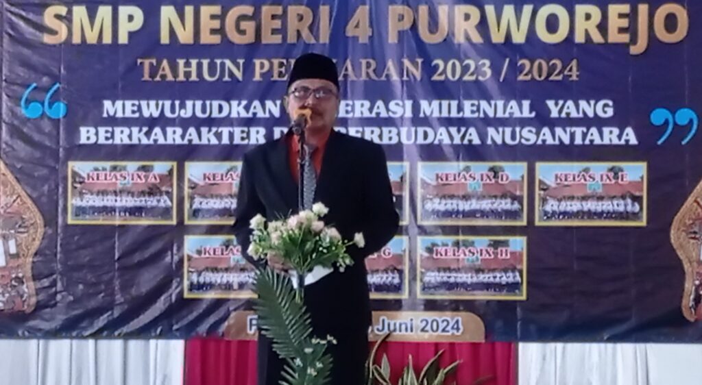 Usai menyatakan kelulusan siswanya, Suswanto pun menyampaikan ucapan terima kasih kepada guru dan staf yang telah membimbing dan mendidik siswa kelas 9 selama tiga tahun dengan penuh dedikasi dan kesabaran. “Terima kasih juga kepada bapak ibu orang tua wali kelas 9 yang telah memberikan kepercayaan kepada SMPN 4 untuk mendidik putra putri bapak ibu,” tuturnya.