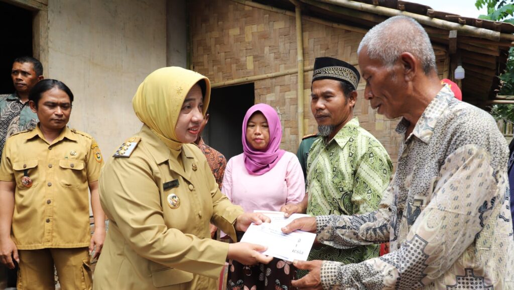 GEBANG, Bupati Purworejo Yuli Hastuti melakukan monitoring dan memberikan bansos untuk 18 warga terdampak bencana alam di dua kecamatan, yakni Purwodadi dan Gebang. Usai memberikan bansos, dilanjutkan dengan meninjau Jembatan Kragilan di Kecamatan Gebang yang tergerus air sungai pada Selasa (9/1).